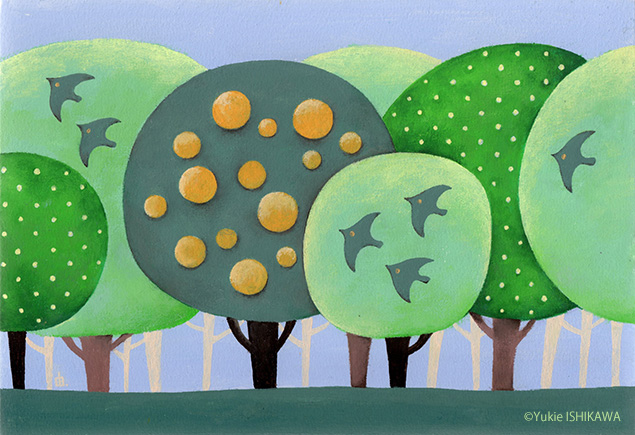 54 581 これも過去作。タイトルは「光合成する街」でした。 #イラスト #アナログイラスト #ガッシュ #不透明水彩 23/03/28 23:57