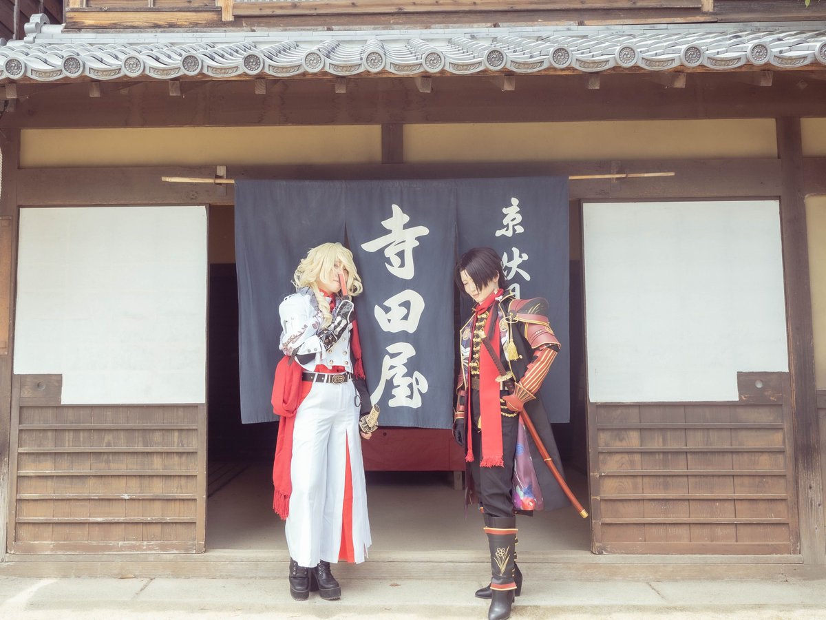 [cosplay] . . . 特命調査開始 . . . ▷加州清光 ゆいの 一文字則宗 辰黎 @shinrei_cos photo 嵐華 @ranka_x_x #コスメルin太秦映画村 #コスメル