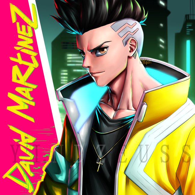 ✨DAVID MARTINEZ from CYBERPUNK EDGERUNNER 💙 J'ai beaucoup aimé l'anime autant l'histoire que le charadesign des personnages ! Du coup, j'étais obligé de faire un fanart, même simple, du personnage principal !! 💛 #CyberpunkEdgerunners #fanart #cyberpunk
