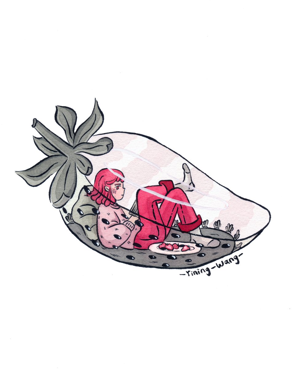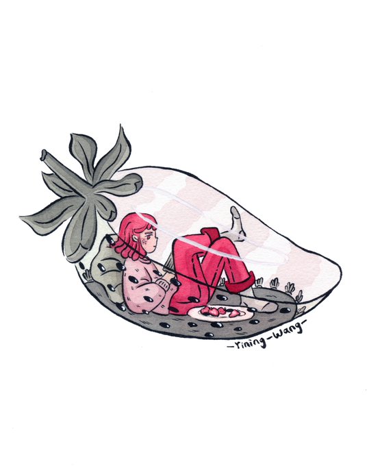 Strawberry Reading #art #illustration #watercolor #watercolorpainting #watercolorillustration #插画 #手绘 #水彩