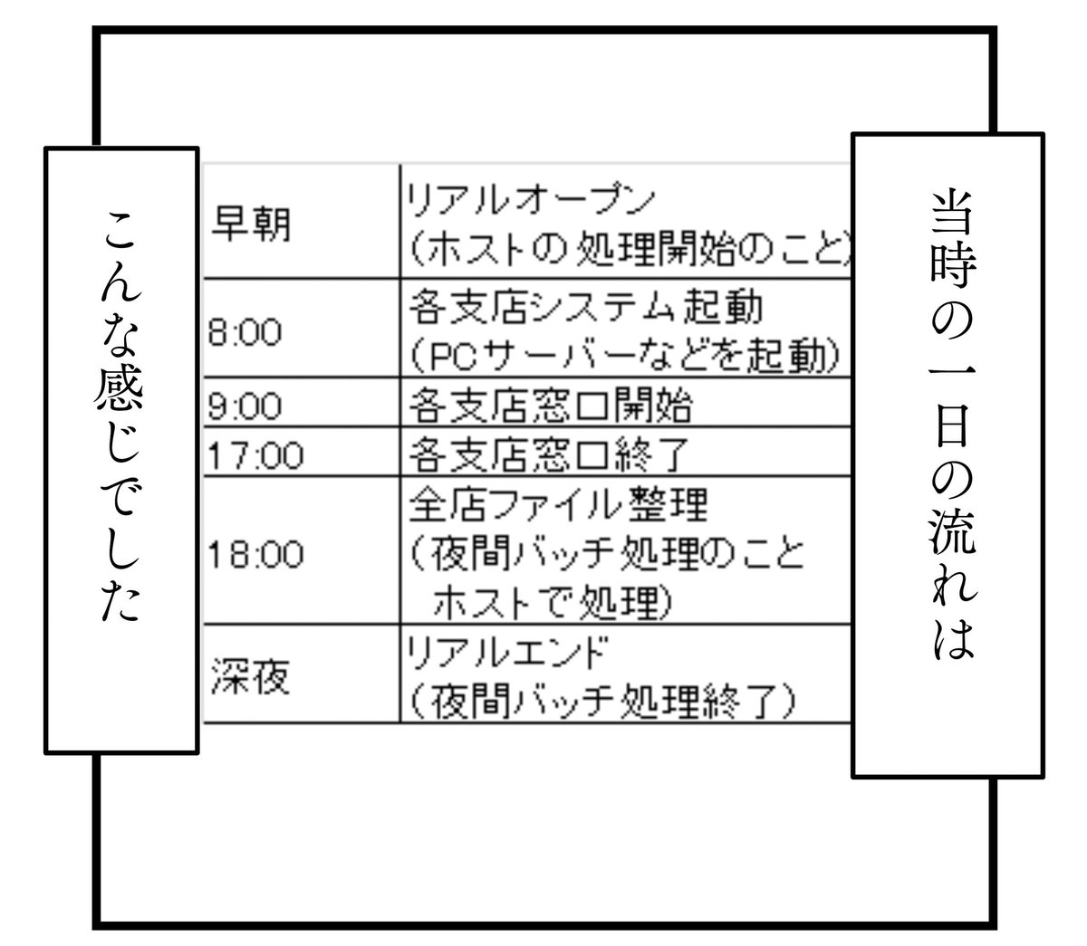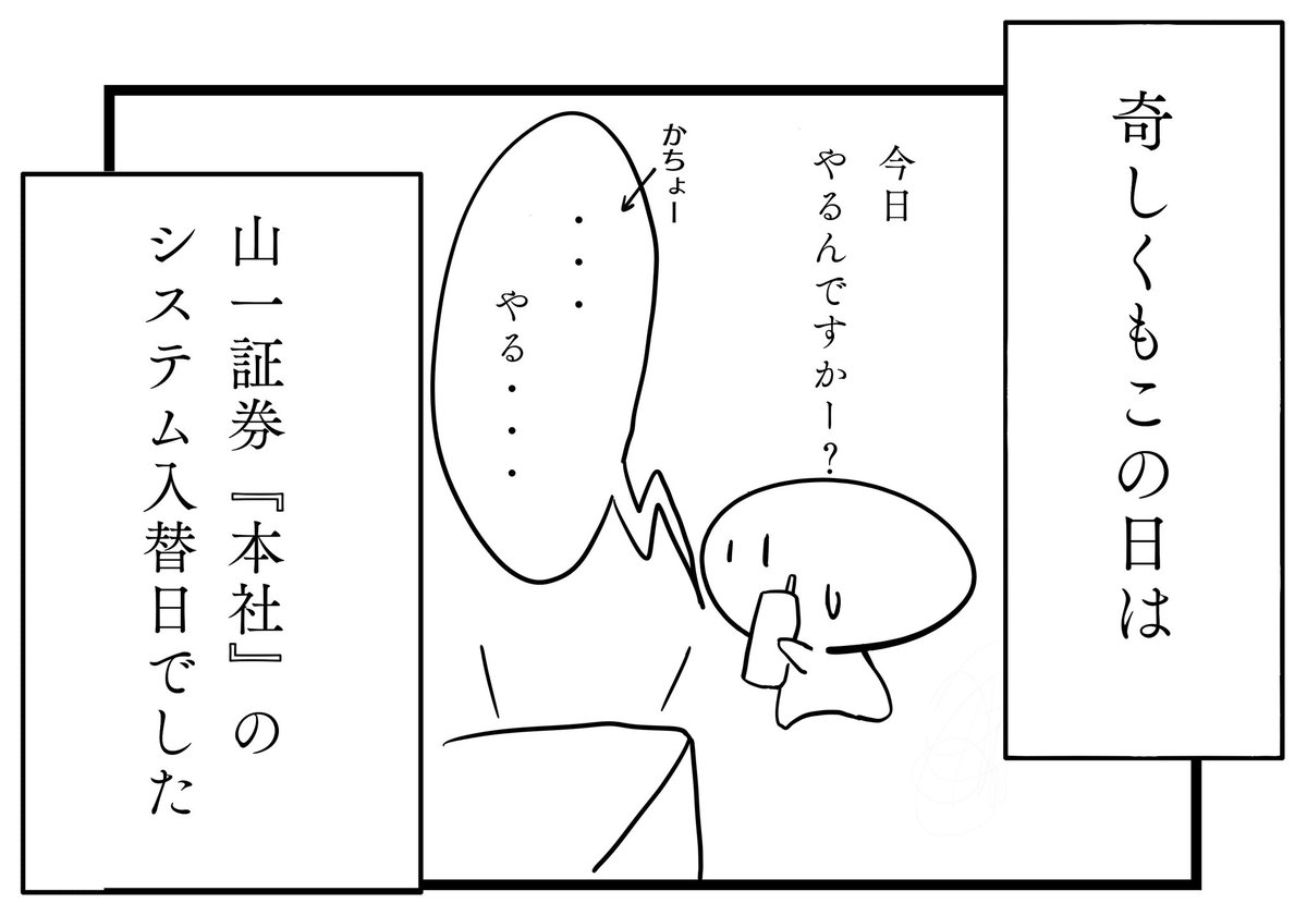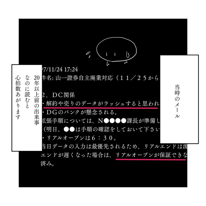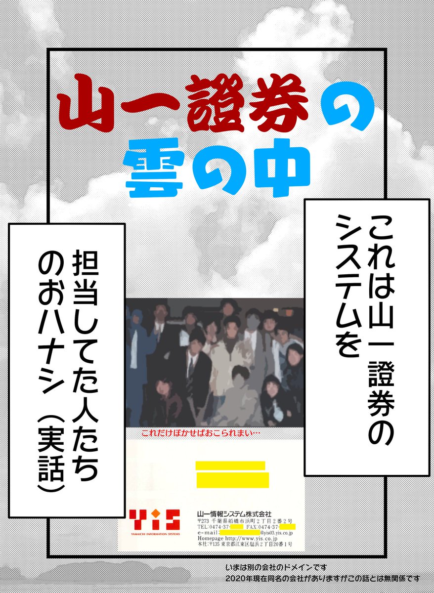 1 5 『山一證券の雲の中』2回目 (オリジナル漫画) 山一證券自主廃業当時をシステム担当の視点でまんがにしてみました。 #山一證券 #山一証券 #しんがり #SE #システム屋 #システムエンジニア #漫画が読めるハッシュタグ #漫画 #実録漫画 20/11/22 09:15