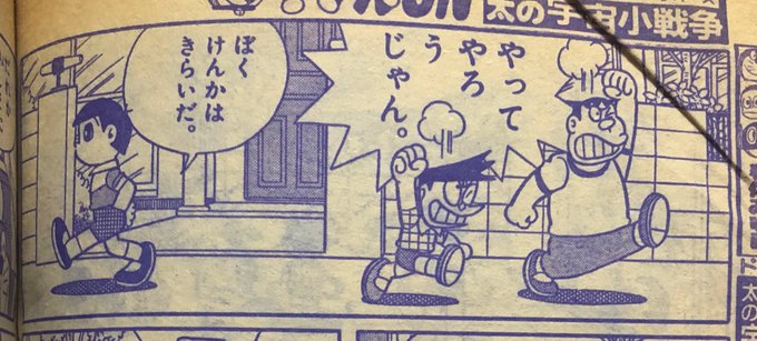 宇宙小戦争で途中から出木杉くんが姿を消す理由、単行本だとまるっと削除されてるけど雑誌だと自分からグループを抜けたからなの久々に読んで知った。