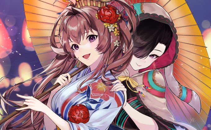 58 164 イラストレーター様繋がりで、甲斐姫ちゃんと蔡琰さんが一緒にお祭りへ出かけるイメージで描いたりしてました! #今月描いた絵を晒そう 22/07/31 21:26