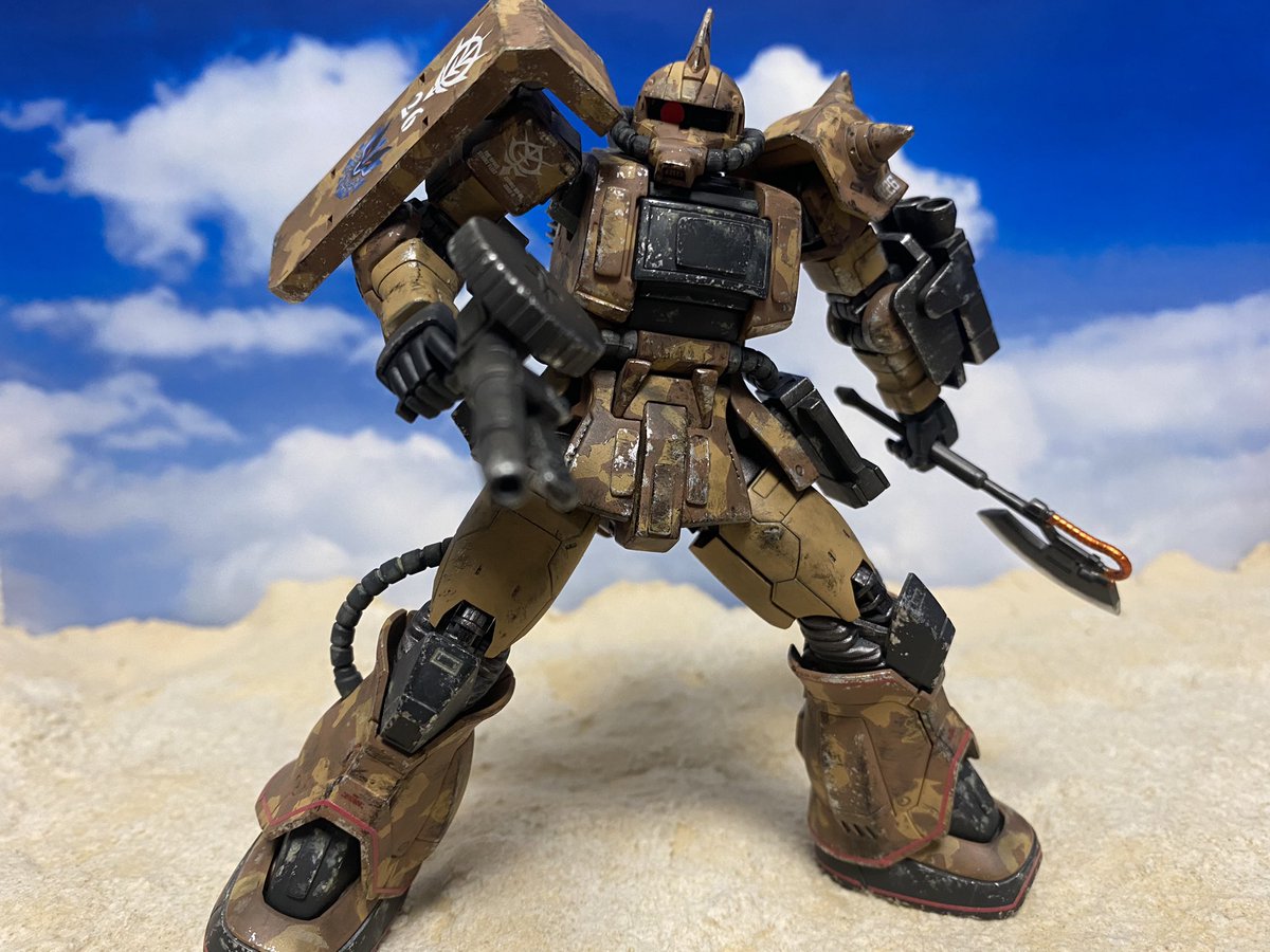 #今月作ったプラモ晒そうぜ 今月は出張もあって模活時間が減ったため、ザクコラボの時に作成したザクデザートタイプ 闇夜のフェンリル隊砂漠迷彩仕様だけっすね( ;∀;) 来月はご当地コンペもあるので、もう少し頑張れると思いますw #ガンプラ好きと繋がりたい
