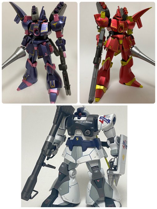 #今月作ったプラモ晒そうぜ スレッガー専用陸ジム、征服王サイサリス、ティターンズカラー ザクII F2 局地型ガンダムの4作 けっこう今月は頑張ったかな(・∀・) それぞれの作品に、たくさんのいいね&RTありがとございますm(._.)m #ガンプラ好きと繋がりたい