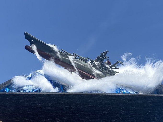 #今月作ったプラモ晒そうぜ 今月はヤマト発進プチジオラマと海自仕様(もしくはリアルタイプ)ドラグナーと、ガンプラ以外の作品になりました(・∀・) 海面ジオラマネタは、また思い付いたし来月もまた頑張って作りますよー(๑•̀ㅂ•́)و✧