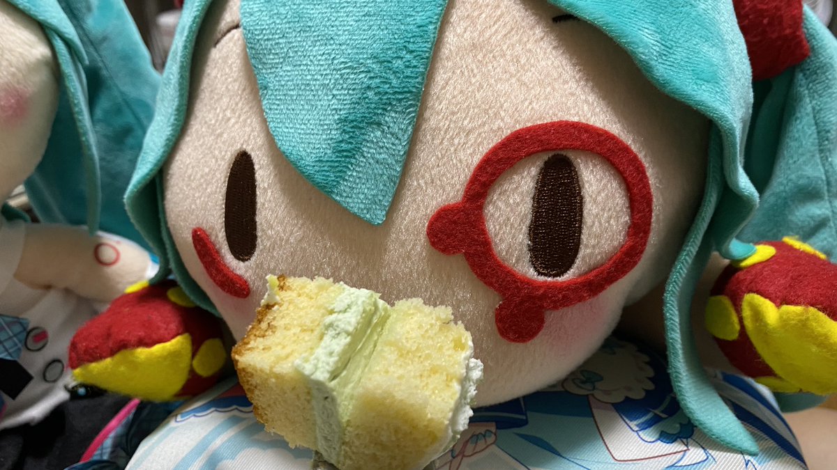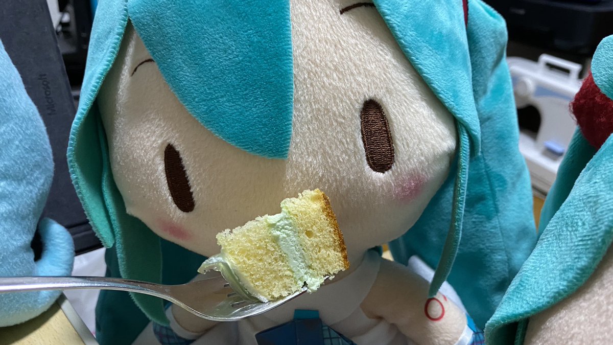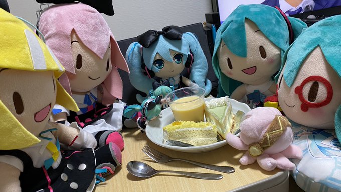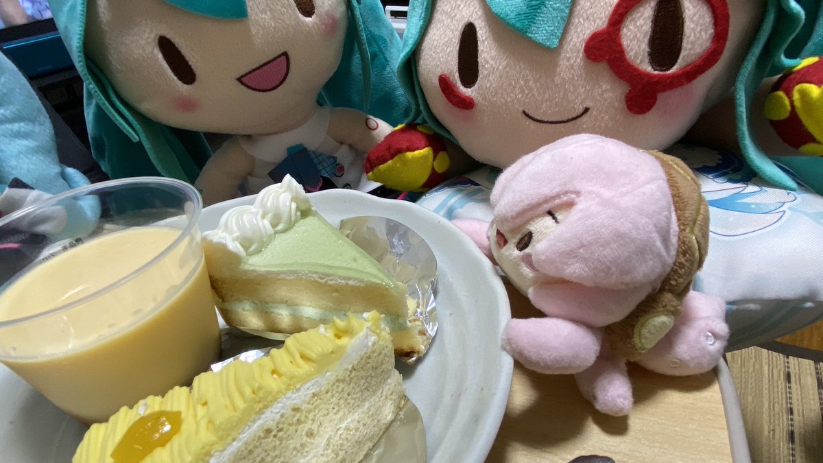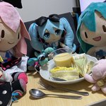 #初音ミク生誕祭2020 #初音ミク誕生祭2020 やっぱりケーキにつられてやってきたまくはり軍団も交えて、ケーキととろけるプリン食べようか✨ 先ずはメッセさんとDE:MONSTERさんに✨