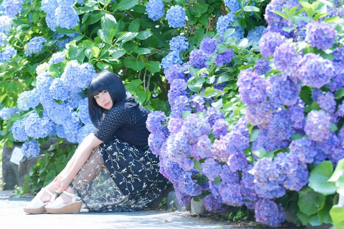 2 13 紫陽花またいきたいな٩(ˊᗜˋ*)و (この後海撮影なのおもろい暑すぎ梅雨)(服も髪型も変えた) 21/03/09 06:24