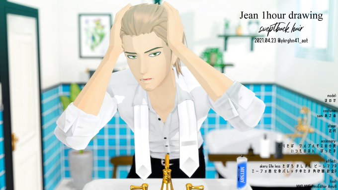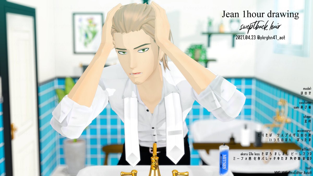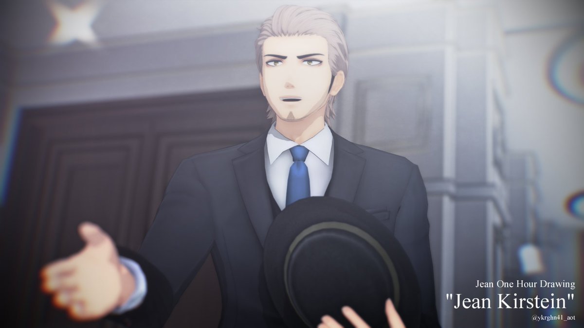 #ジャン版深夜の60分一本勝負 @jean_1draw お題:ジャン・キルシュタイン 大使のお仕事ってどんななのかな?偉い人に会って話したりするんだろうか?あれからの彼の人生に思いを馳せながら、オールバックヘアをモデリングしましたっ