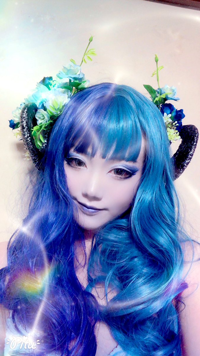 あー、やっぱりメイク楽しい☺️ 角はもっとツヤツヤにニス塗らねば 衣装も決めて、髪切って整えて撮影会したいなー #創作 #鬼 #レイヤーさんと繋がりたい #カメラマンさんと繋がりたい #宅コス