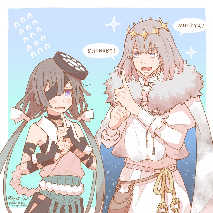 #今年も残りわずかなので今年一番伸びた絵を貼る見た絵描きさんも強制でやる #FGO 藤わかのオベロンと千代女ちゃんでしたー! かっこいいからが理由で刀欲しがるなら、ニンジャ好きなのもわかる気がする