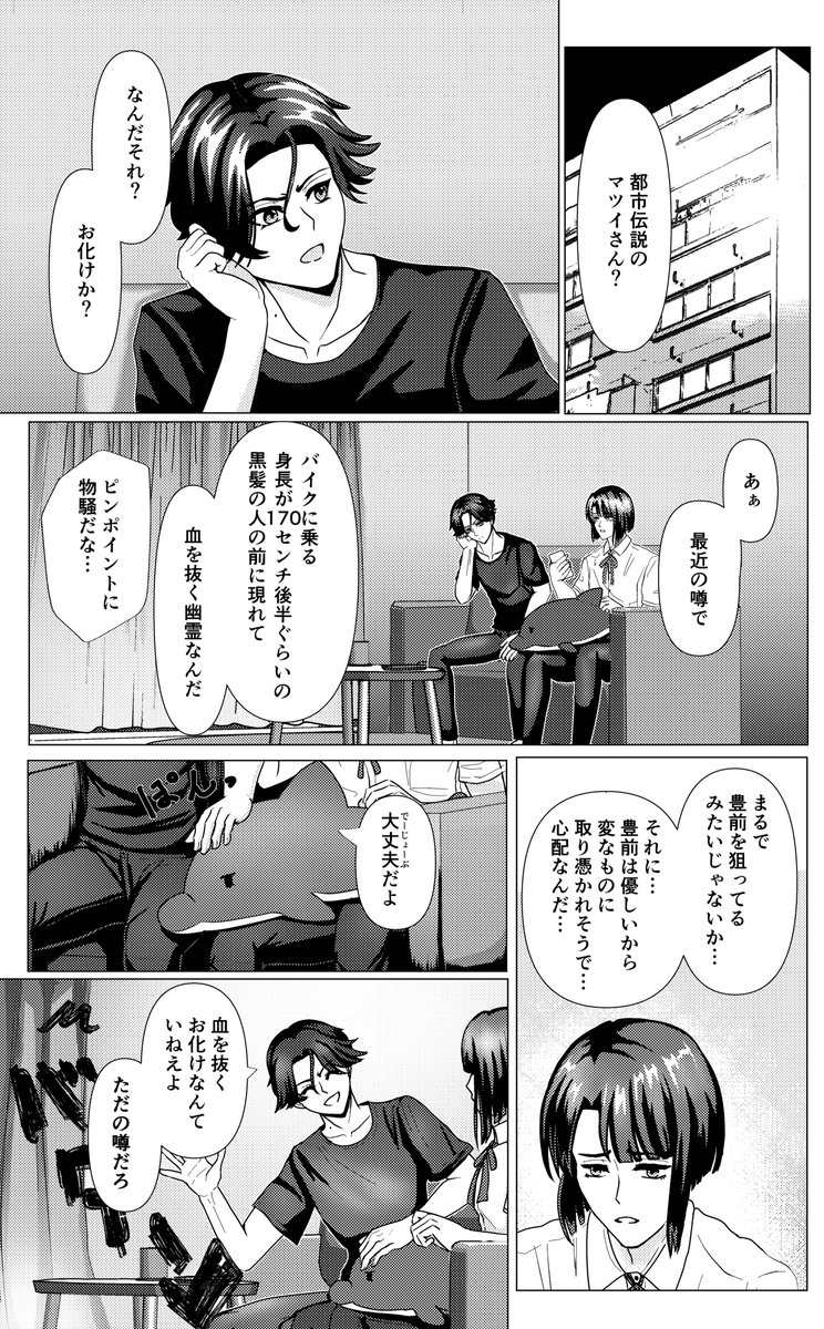 15 25 2022/8/21 SUPER COMIC CITY 30(超閃華の刻2022夏)で、頒布予定のぶぜまつの新刊暫定サンプルです。 ※現パロ・破壊表現あり 現世のぶぜまつのところに幽霊のマツイさんが現れて、ぶぜんを横取りしようとする話です。少しホラーでシリアスですが、一応救いはある感じです。(1/2) 22/08/07 12:34
