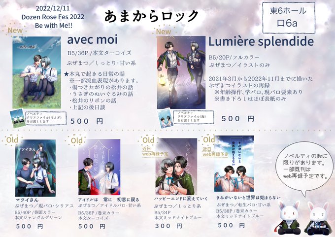 12 13 12/11 「Be with Me!!」おしながきです!新刊は漫画とイラストまとめの2冊になります…! よろしくお願いいたします✨ 22/12/07 08:28