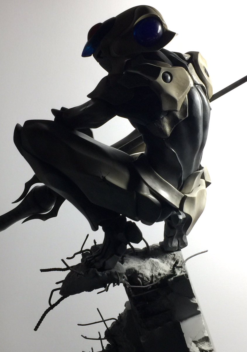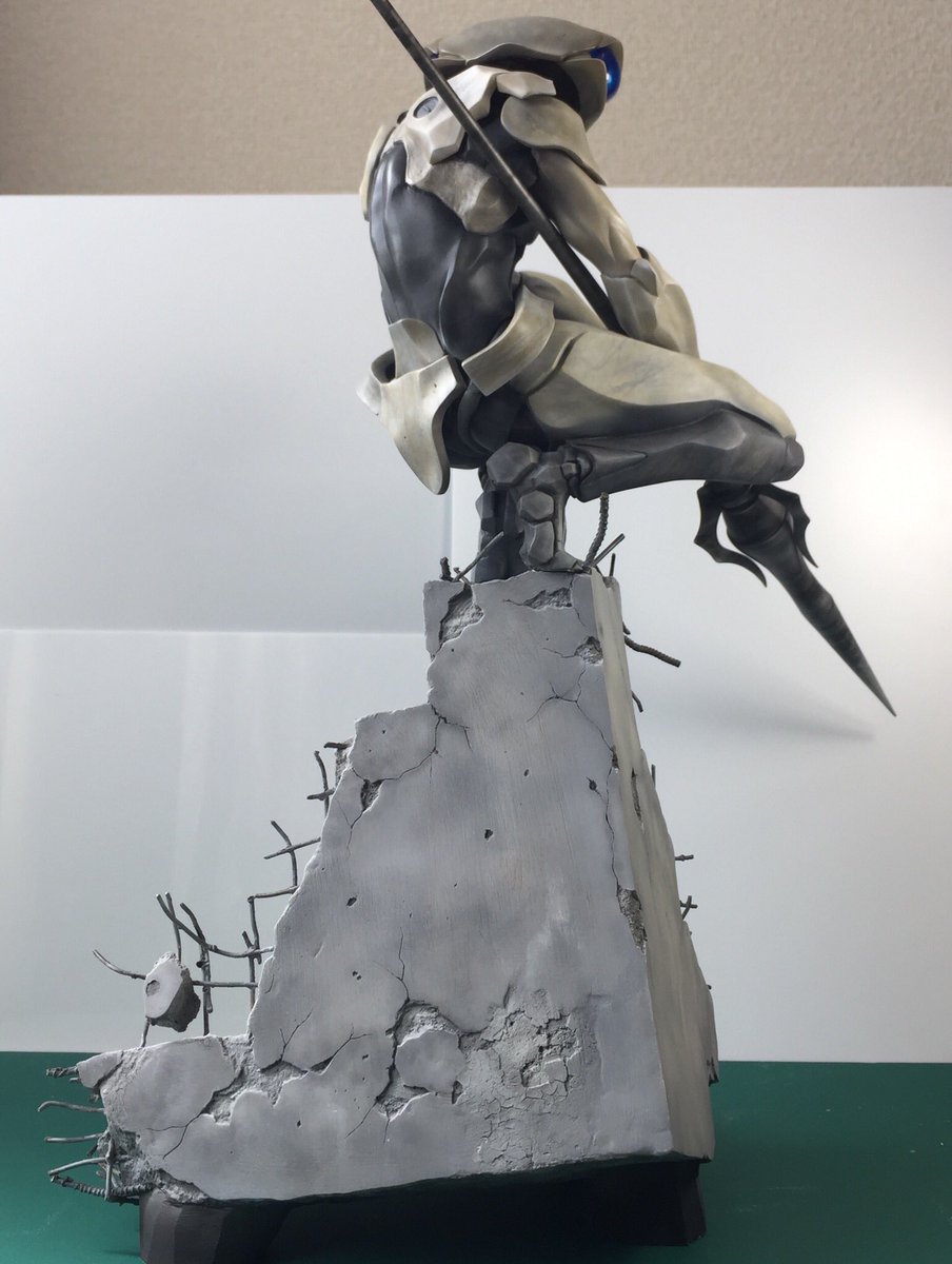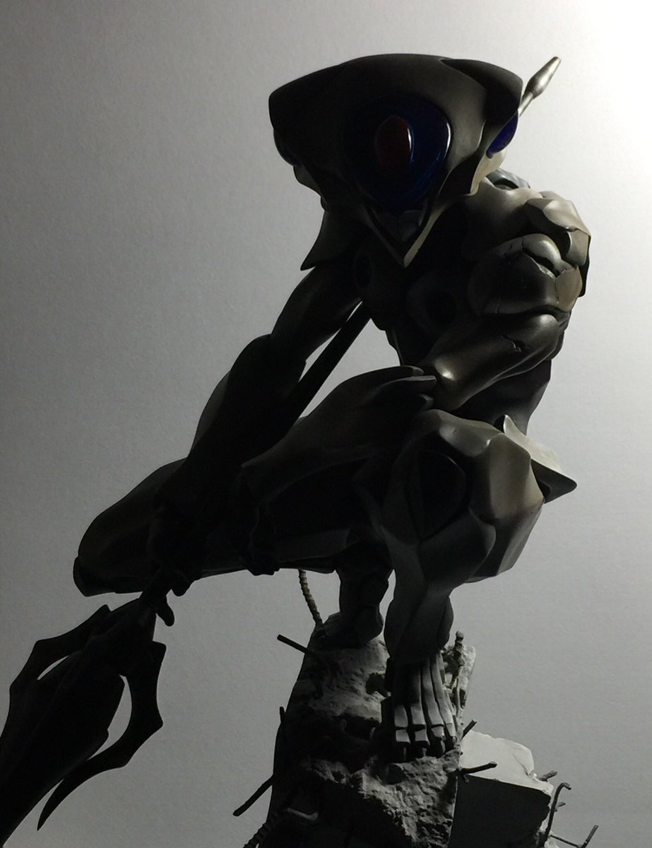 #幻魔大戦ベガ の進捗。 ベースに乗せて1回転。 ベース18cm、ベガ18cmです。 スケールは1/10で50cm角の柱に乗ってます。 ベガの身長は3.3メートルのわたくし設定です。 ニューヨーク市での戦いをイメージしました。