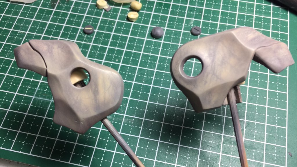 #幻魔大戦ベガ の塗装工程です。 マホガニーサフ→粗いテクスチャーごしにグランプリホワイト→タン→細かいテクスチャーごしにグランプリホワイト→タン→ #制作過程の写真だけで興味を持ってくれる方へ届け