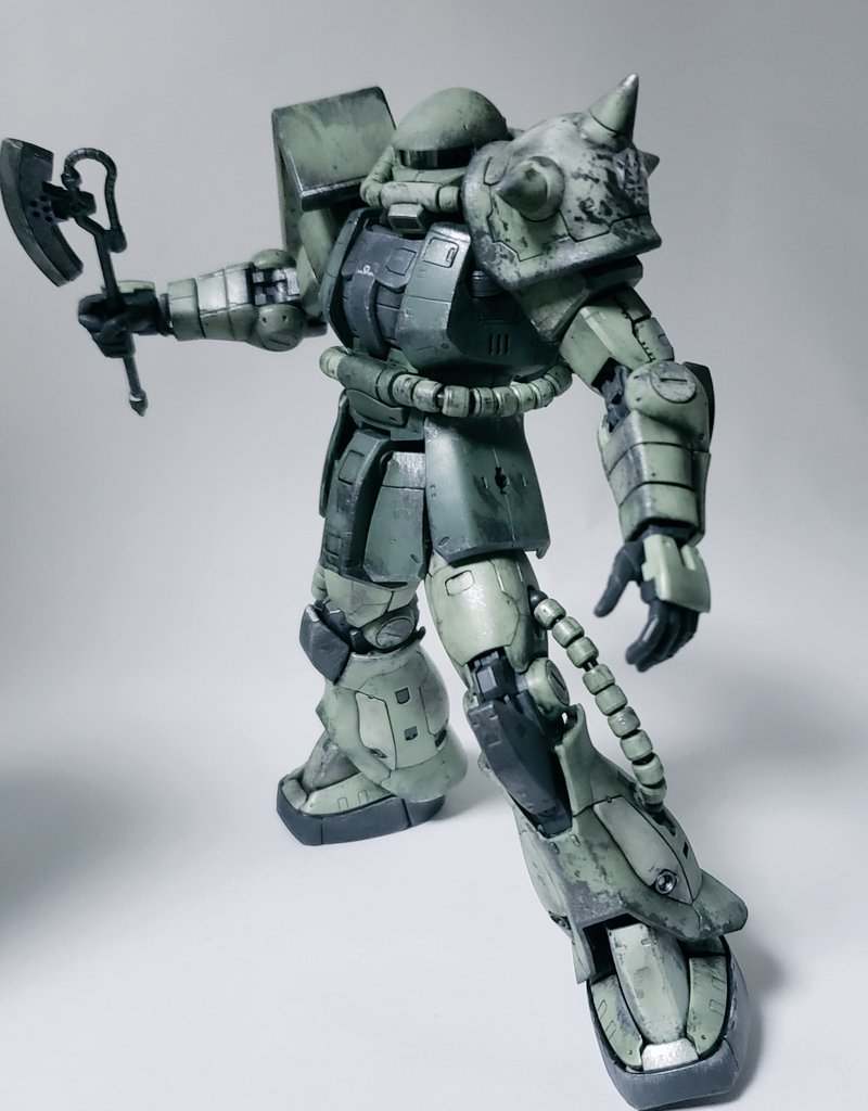 RGザクです。 ウェザリングしてからだったんで、リアリスティックデカールです、ほぼ貼ってないです。 いやー、、初期のRGは大変でしたな💦一応完成です! #ガンプラ #ザク #ガンプラ初心者 #ガンプラ好きと繋がりたい #ガンプラの画像貼るとRTされると聞いて