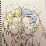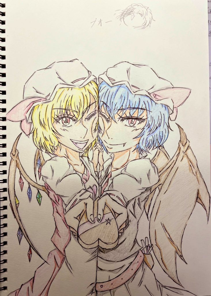 #東方Project #レミリア・スカーレット #フランドール・スカーレット #レミフラ #絵柄が好みっていう人にフォローされたい レ「いくわよフラン...」 フ「はい!お姉様......!」 レ・フ「バレンタインちょ〜こ〜- ̗̀ 𖤐」 咲「(* ̄ii ̄)ハナジブォォォ」