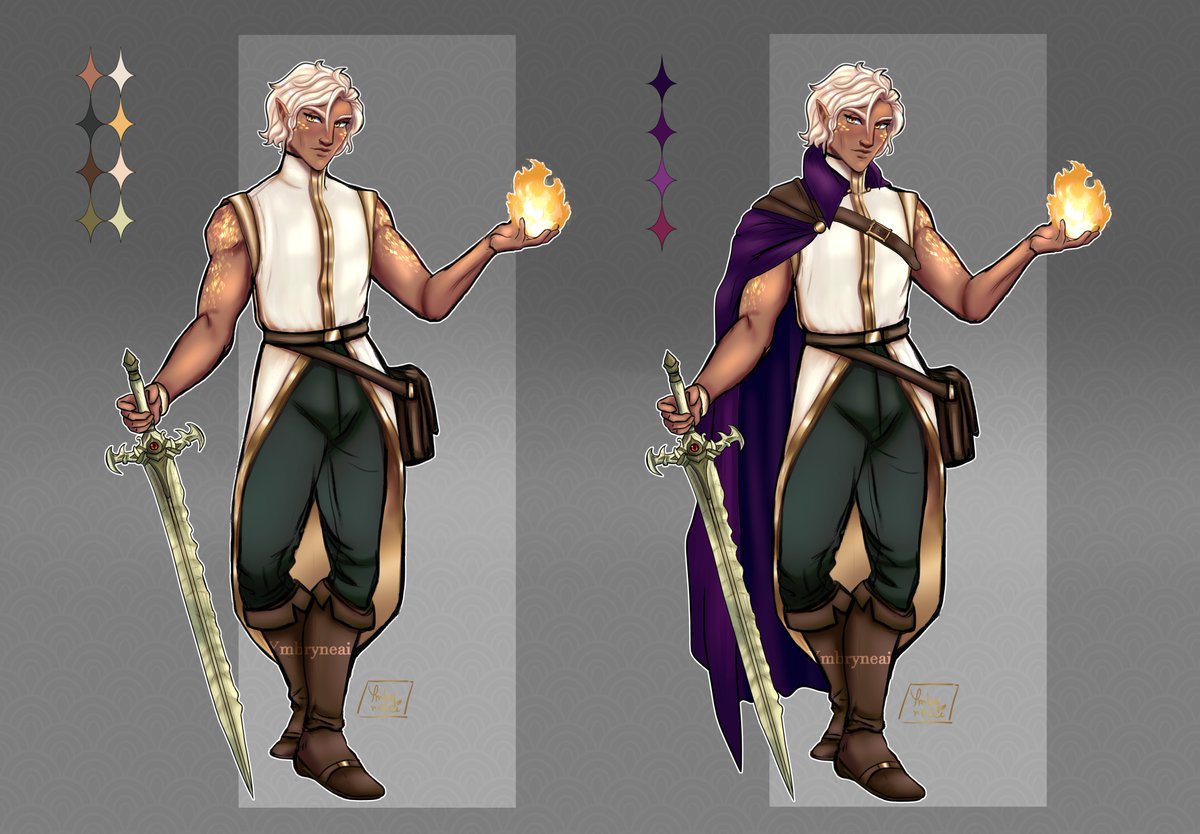 Gift for my partner with their character from our campaign dnd, Soren Dawnspear - half elf sorcerer with gold dragon blood. Spooky sword? Ispired by Byleth's sword from Fire Emblem ^^ #DnD #DnDcharacter #dndart #art #artists #dndartist