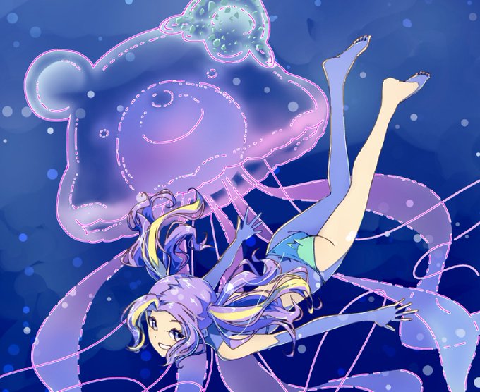 お待たせしました!今回はルリちゃん描きました!クラゲがスケたら良さげじゃない?じゃない?ってインスピレーションがジュビビバブーン!ってきました。メルリのハナをクラゲの核にできたのはいいなぁって思ってます。はい、シール合同宜しくぅ! #アイカツスケスケシール合同 twitter.com/Zecharian/stat…