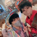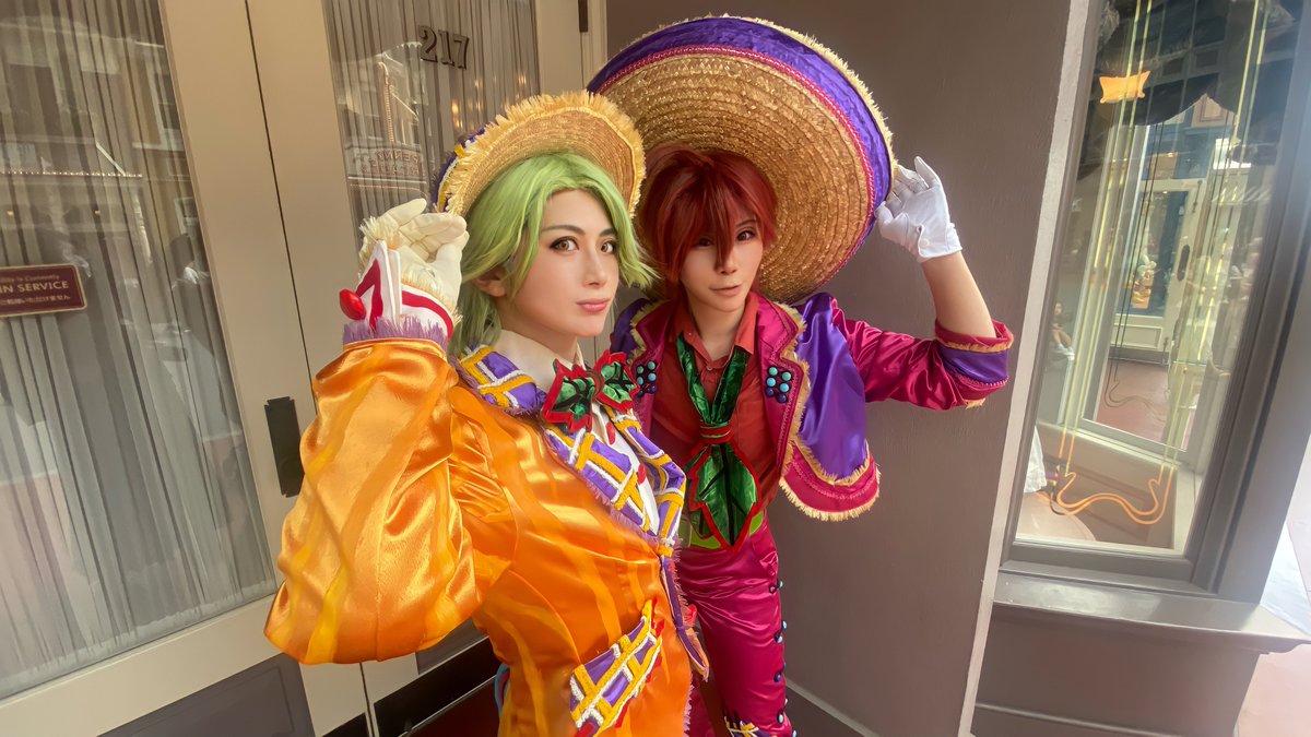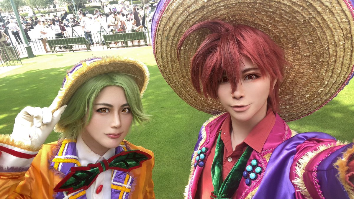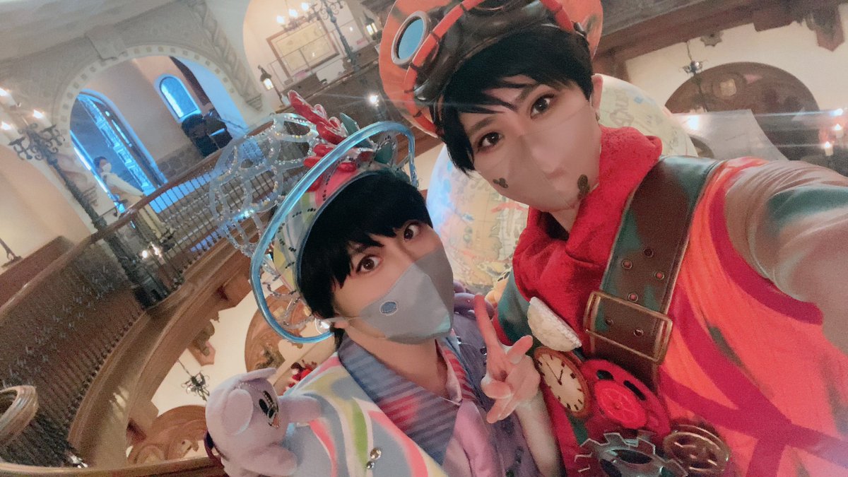 スニーク目当てランドきてますー! スプブ音声撮り下ろしだった…なんか今年でスプブ最後なのかなって感じがしてしまい悲しみが深い ハベ衣装のホセパンで遊んでるよ!! 今日暑いので皆さんご無理なさらず🥺💦 ホセ:森野さん パンチート:やまだ #Dハロ仮装2022