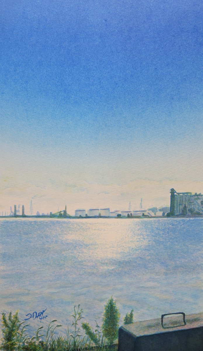 雨が降ってて晴れ間が恋しいかと思ったらギラギラと暑い日もあるんですよね 題「6月ともなるとね」 サイズ:F4号 使用画材:#透明水彩、水彩紙 #水彩画 #3色画 #風景画 #アナログ絵 #透明水彩家のつどい #watercolor #landscapes #art