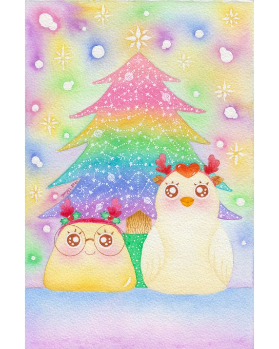 Have a Joyful Starry Christmas!😘🎄💖🪐🌠🌌 —With love ( ˘ ³˘)💖, Puni 🍮 & Gemi 🐤 . #Watercolor #Christmas2021 #ArtistOfIndonesia #Artidn #ArtistOnTwitter #zonakaryaid #イラスト