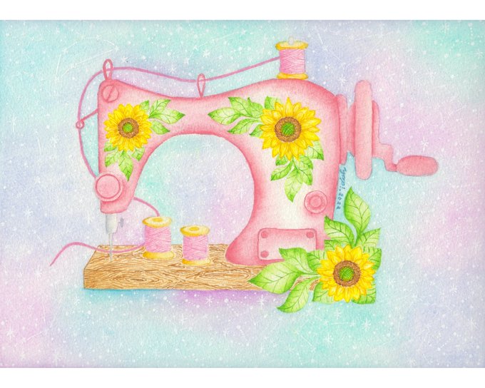 Summer Dream Sewing Machine🌻🧵💖 . Personal commission for my big bro❤ . #watercolor #ArtistOfIndonesia #Artidn #ArtistOnTwitter #zonakaryaid #イラスト