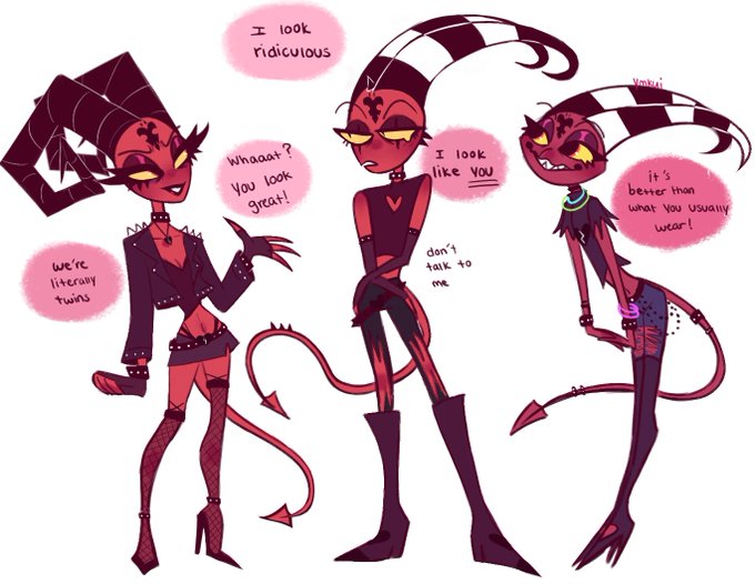 personally i think that everyone should draw them in these outfits at least once #HelluvaBoss #HelluvaBossFanart #HelluvaBossMoxxie #HelluvaBossMillie #HelluvaBossBlitz #Blitzo