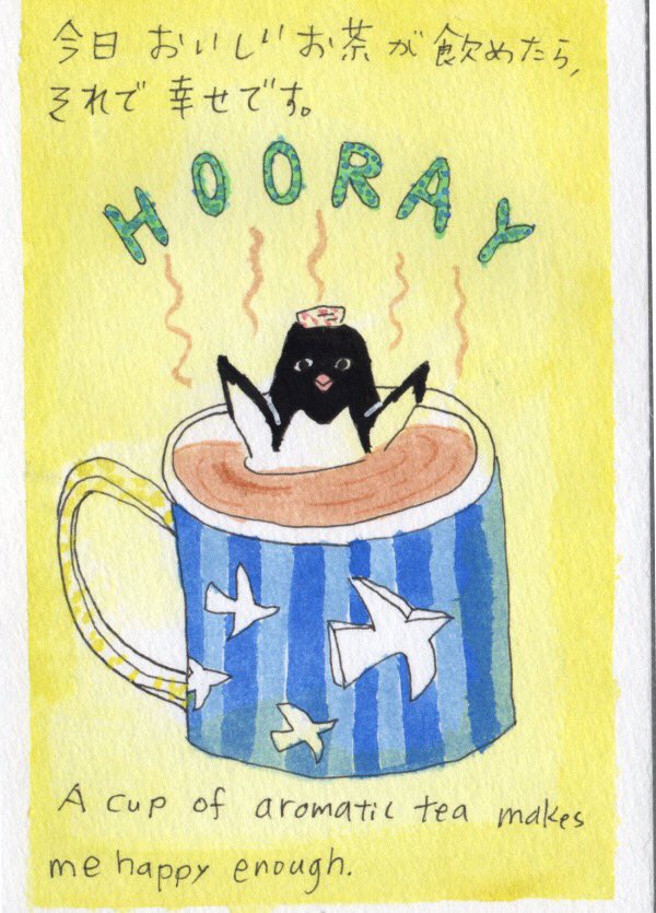 文字が頑張ったら、ペンギンが負けてて笑えました。なんか見た事ある色だと思ったら、キングペンギンの首のグラデと一緒ね。Happy halloween♡ #レッドドットのペンギン #APenguinOnTheRedDot #水彩 #ペンギン