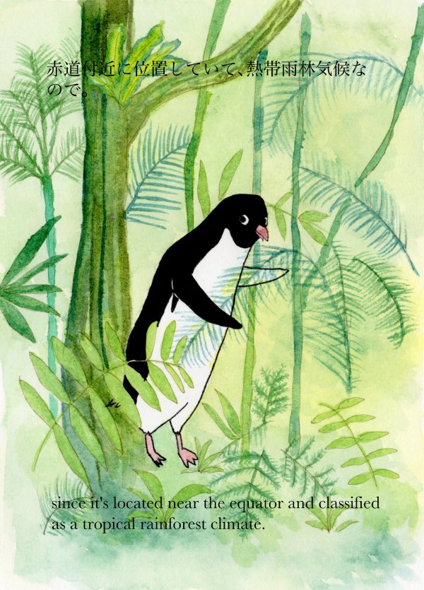 レッドドットのペンギン ep.3 みどり (1/3) 緑色大好きなペンギンの話 #レッドドットのペンギン #APenguinOnTheRedDot #水彩 #イラスト #漫画 #マンガ #まんが #manga #comics #シンガポール #Singapore #漫画が読めるハッシュタグ #ペンギン #みどり #緑 #green #アデリーペンギン