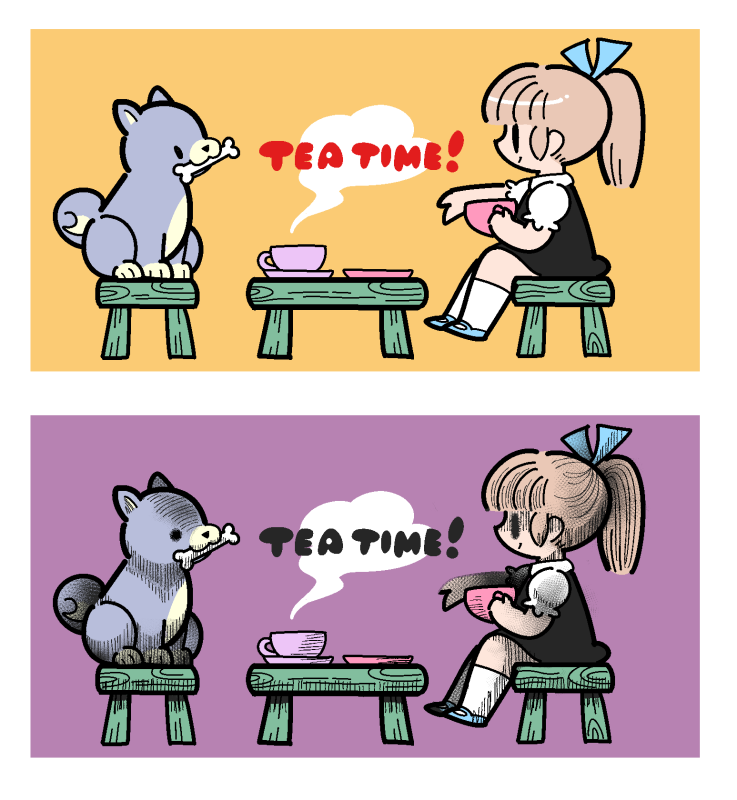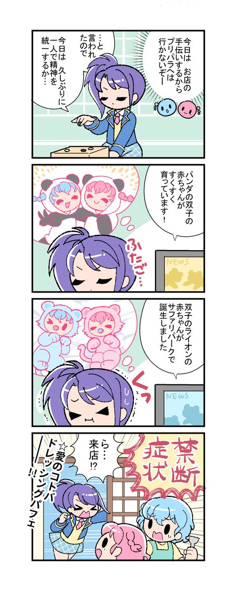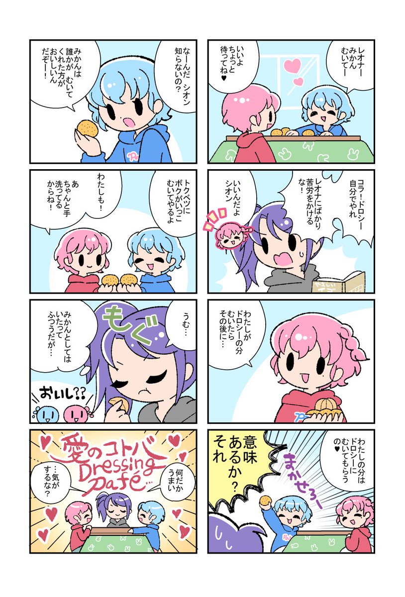 待って!!!!!5億年ぶりにドレシ描いたらドレシほのぼのまんがの最後にはとりあえず愛のコトバドレッシングパフェって書いたらオチることに気づいたんだけど!!!!(4コマ2連な感じで読んでネ!)