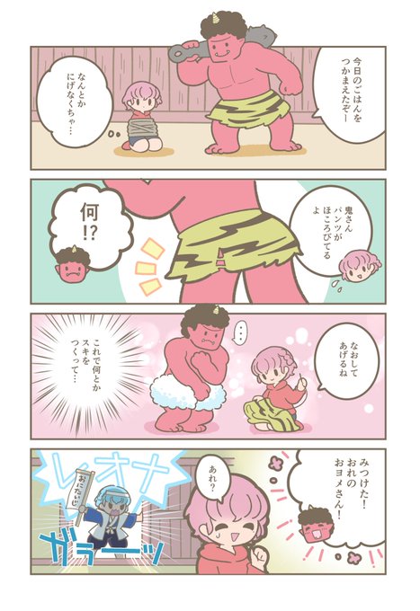 え、なんかさ、鬼のパンツをつくろってるレオナくんを見た気がしてドロレオむかしばなし描いたんだけど、気のせいだっけ????(てきとう)レオナくんて昔話に出てくるかしこい主人公みたいだと思ってる…
