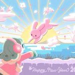 年賀状描かないとなんかやり残した気持ちがすごいのでなんとか描いたよ!うさぎは空からやってくる!今年もよろしくお願いします!