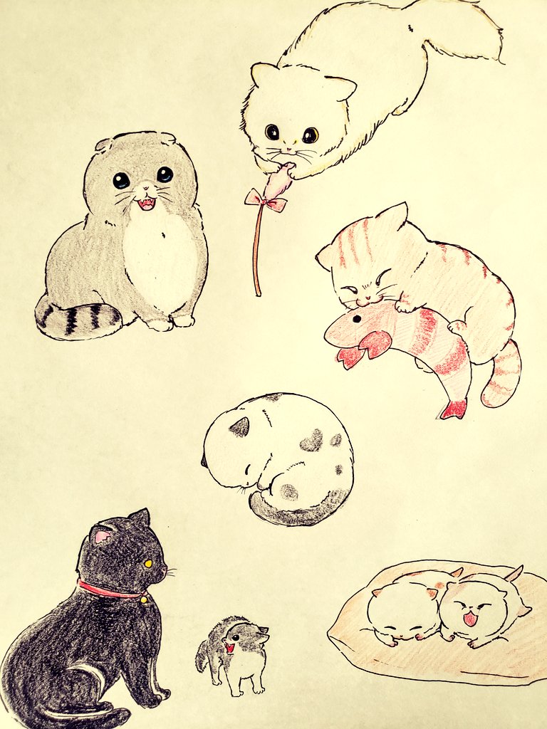 #猫の日 #ねこの日 #イラスト #落書き #色鉛筆 ま〜ぉ