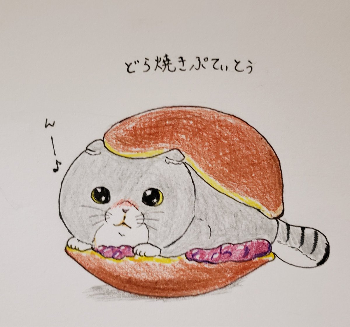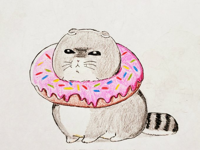 #落書き #イラスト #色鉛筆画 #猫 #ドーナッツ んーーーー…💢