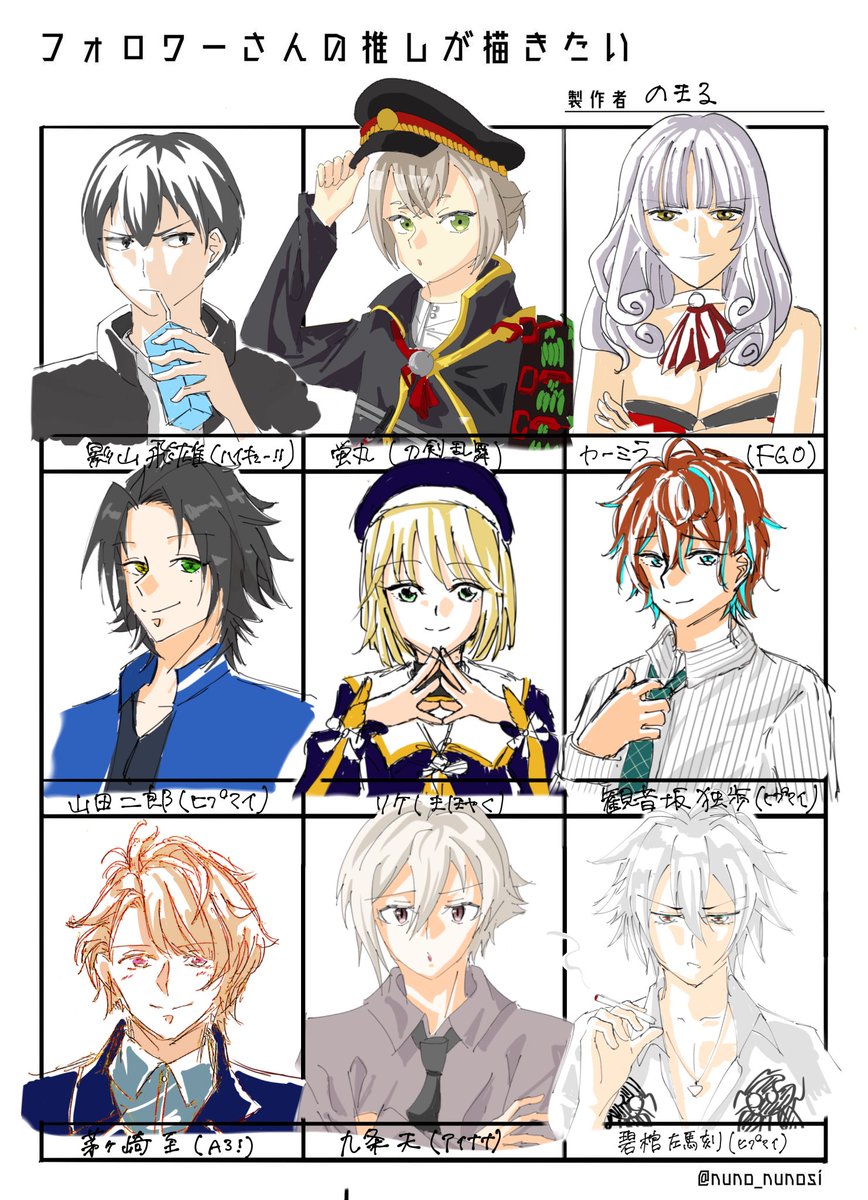 #フォロワーさんの推しが描きたい 2年おまたせしましたすみません……… 順不同(?)です!! リクエストありがとうございました!!楽しかった‼️‼️❤️ 描いた時期で絵柄も塗りも違うね🙄 待たせすぎて誰リクしたか覚えてないと思うので、お呼び出しと一緒に書いておきます🙇♂️🙇♂️