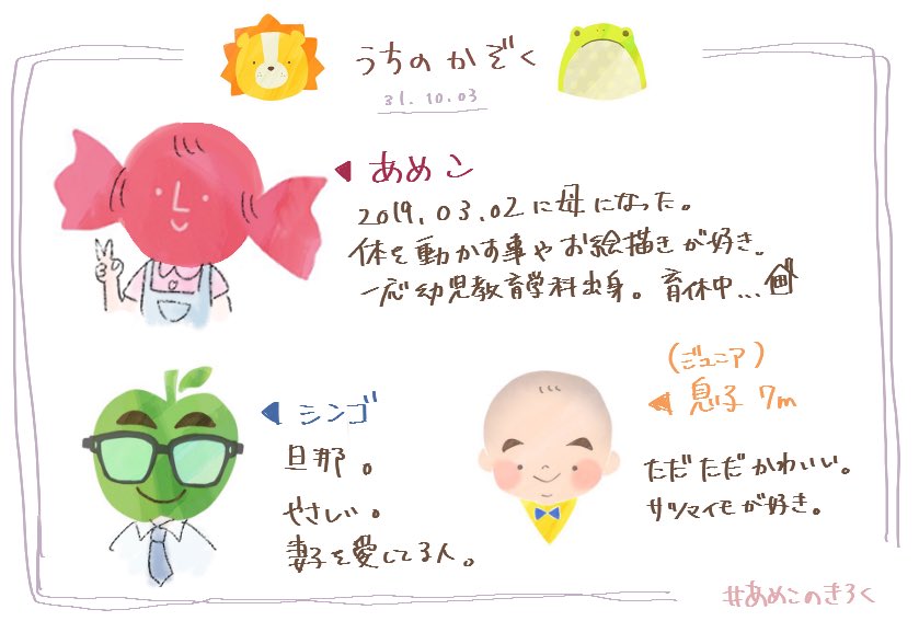 息子にメロメロな父と母の日常を ツイートしたりお絵かきしたりするアカウントです🌸 ジュニア、現在7ヵ月🍑🍬🍏 #育児漫画 #あめこのきろく