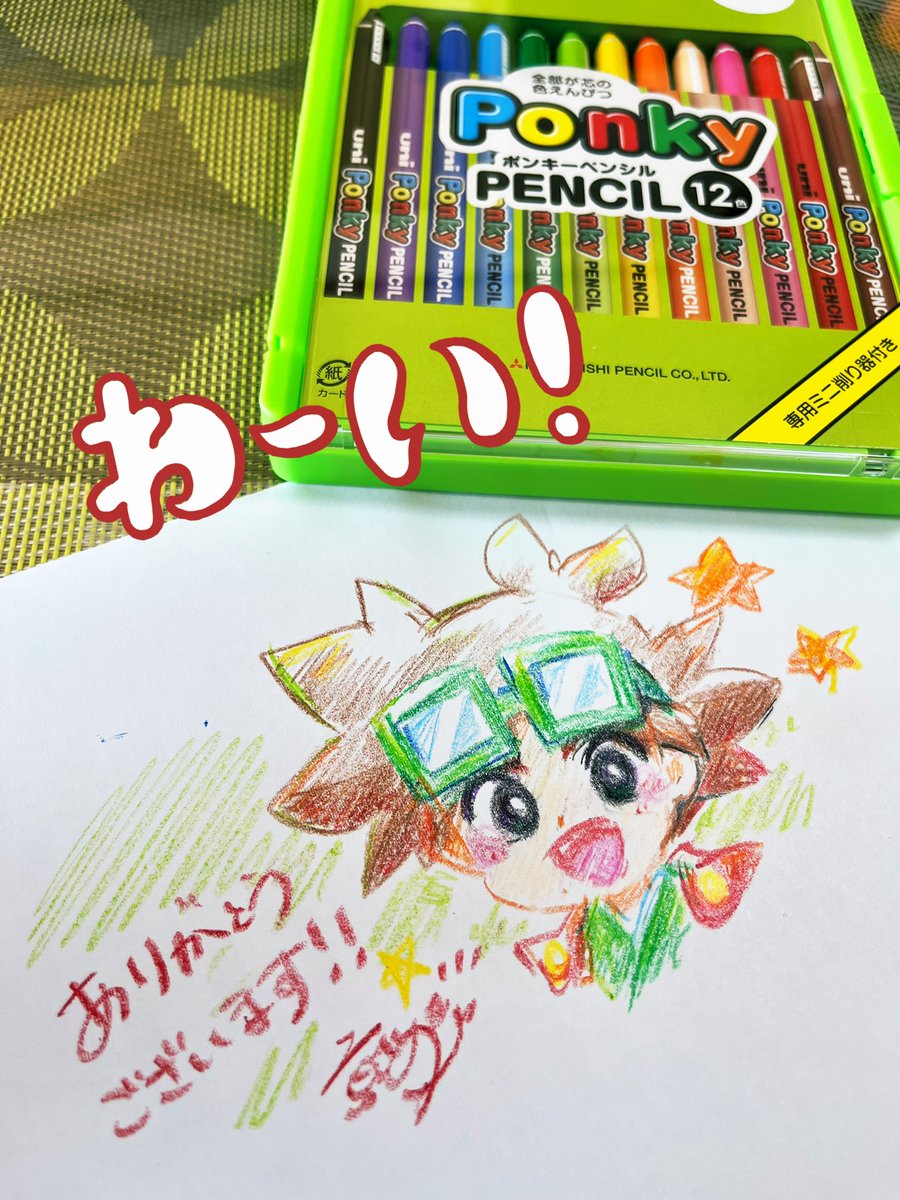 1 19 【お届け人不明】さんから Amazonほしい物リストより ポンキーペンシルいただきました‼️ 新しい書き味‼️‼️ めちゃくちゃ楽しい!!!!! さっそくマッチャマンをお絵描きしました☺️ ありがとうございました❣️✨✨ 23/01/11 09:25