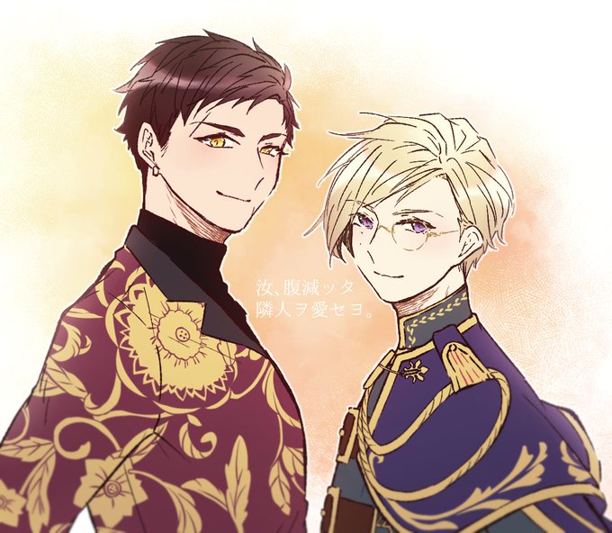 【臣左】 Webオンリー展示のオマケです🐺🦁 左「(お前の存在が一番の癒し)」 .