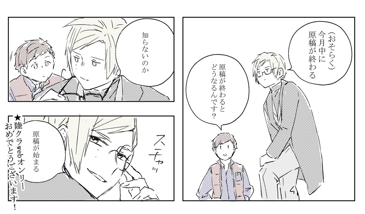 16 53 【新刊サンプル/臣左】(1/3) 「2人の真夜中食堂」 詳細はツリーの画像内にてお願いします🐺🦁 A5/74P(含奥付)/¥800 伏見臣×古市左京 3/30 21:30~ B○○THに登録します 支部では少し長く載せてます 宜しくお願いします! 22/03/27 21:00