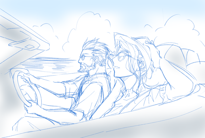 15 52 仕事中唐突に描きたいなっていうイメージをメモっておきたかったのでらくがき(トレスですが) リオニス家でバカンスに行ってくれ🏖️🚗 おやすみなさい。 21/06/30 02:52