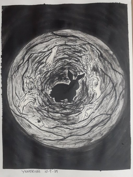 Inktober day 9: Rabbit/hare From @vibrantvials' prompt Chaotic #inktober #inktoberday9 #darktober #2021darktober