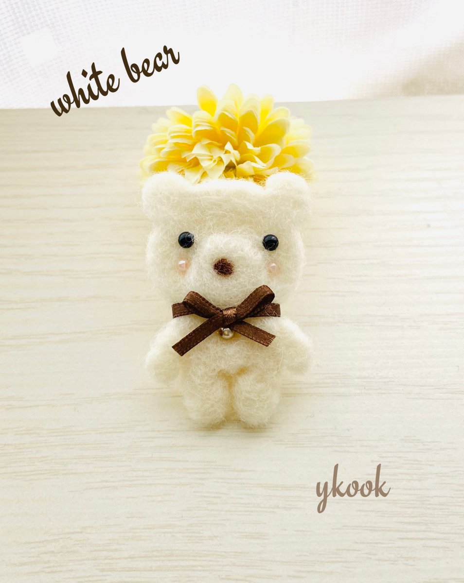 羊毛フェルト とりさん🦜白くまさんブローチ ほっこりブローチです^ ^ #鳥 #インコ #白くま #羊毛フェルト #ブローチ