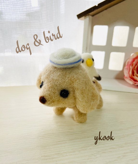 1 8 羊毛フェルト マリンキャップの犬くんとカモメさん 犬くん🐕にカモメさんのっけてみました^ ^minneで販売予定 #羊毛フェルト #犬 #ダックスフント #カモメ #マリンキャップ 20/05/18 16:29
