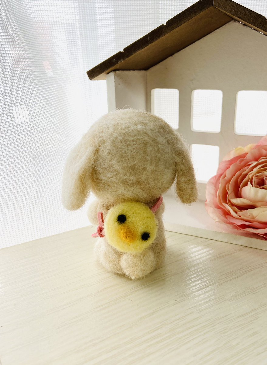 羊毛フェルト ひよこバック🐥持った垂れ耳うさぎさん🐰 ショルダーに星型キーホルダー付いてます⭐️ #羊毛フェルト #うさぎ #垂れ耳うさぎ #ひよこ #ぬいぐるみ