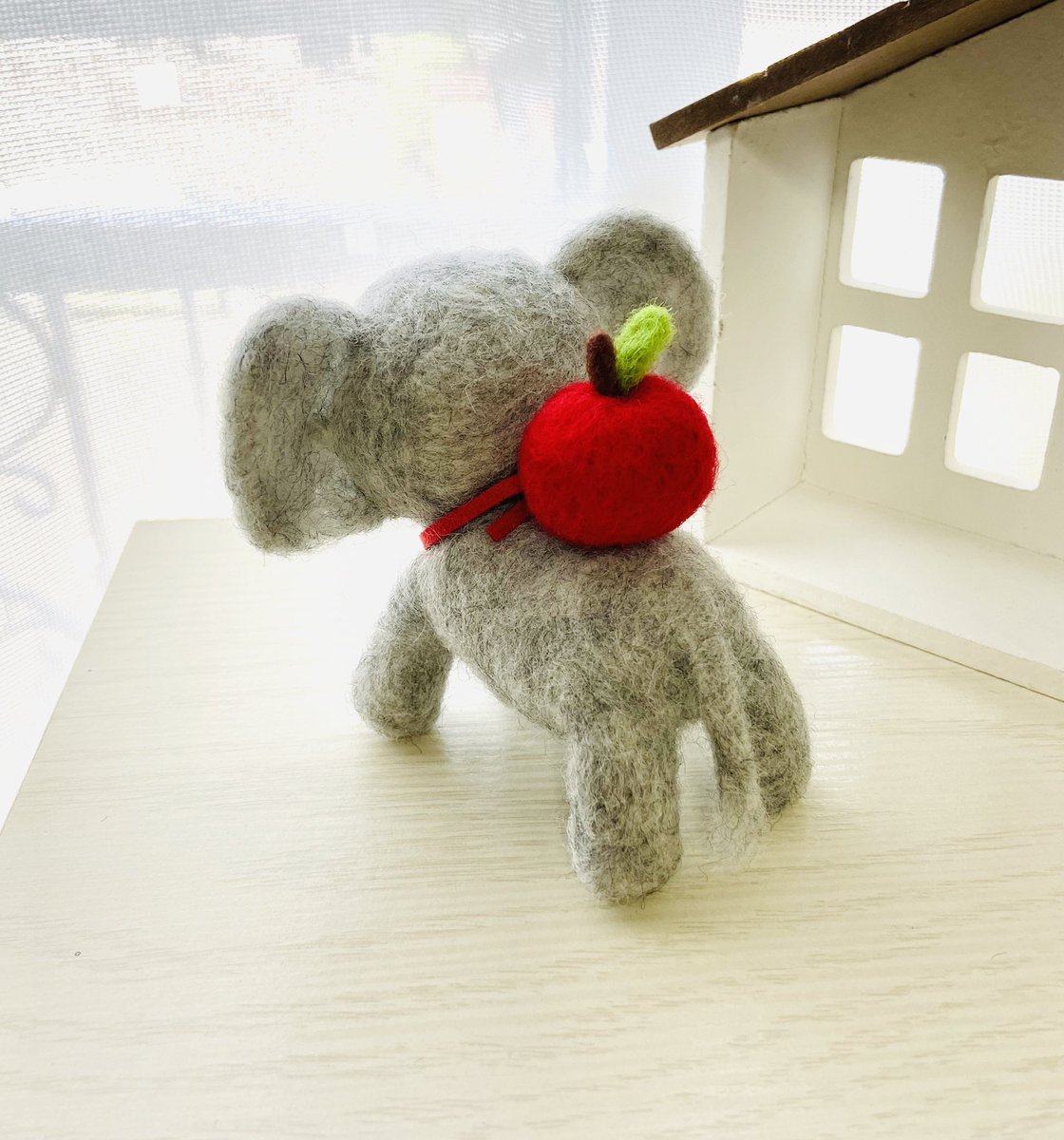 2 12 羊毛フェルト りんご🍎大好き幸せの象さん🐘 初めて象さん作ってみました^ ^ #羊毛フェルト #象 #ぞう #りんご #ぬいぐるみ 20/05/21 16:26