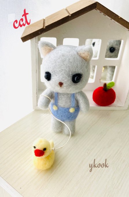 1 9 羊毛フェルト お散歩ねこちゃん🐈 アヒルさんのお散歩してます🐥 minneで販売予定⭐️ #羊毛フェルト #ねこ #猫 #アヒル #散歩 #ぬいぐるみ 20/05/23 10:38