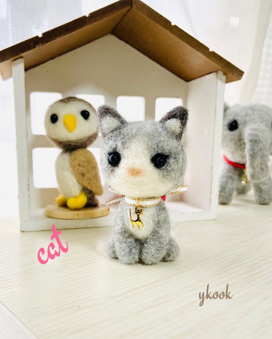0 7 今度は羊毛フェルトの猫ちゃん作りました🐈 ねこのアクセサリー付けてます^ ^ #羊毛フェルト #猫 #ねこ #ぬいぐるみ #置物 20/06/14 19:45