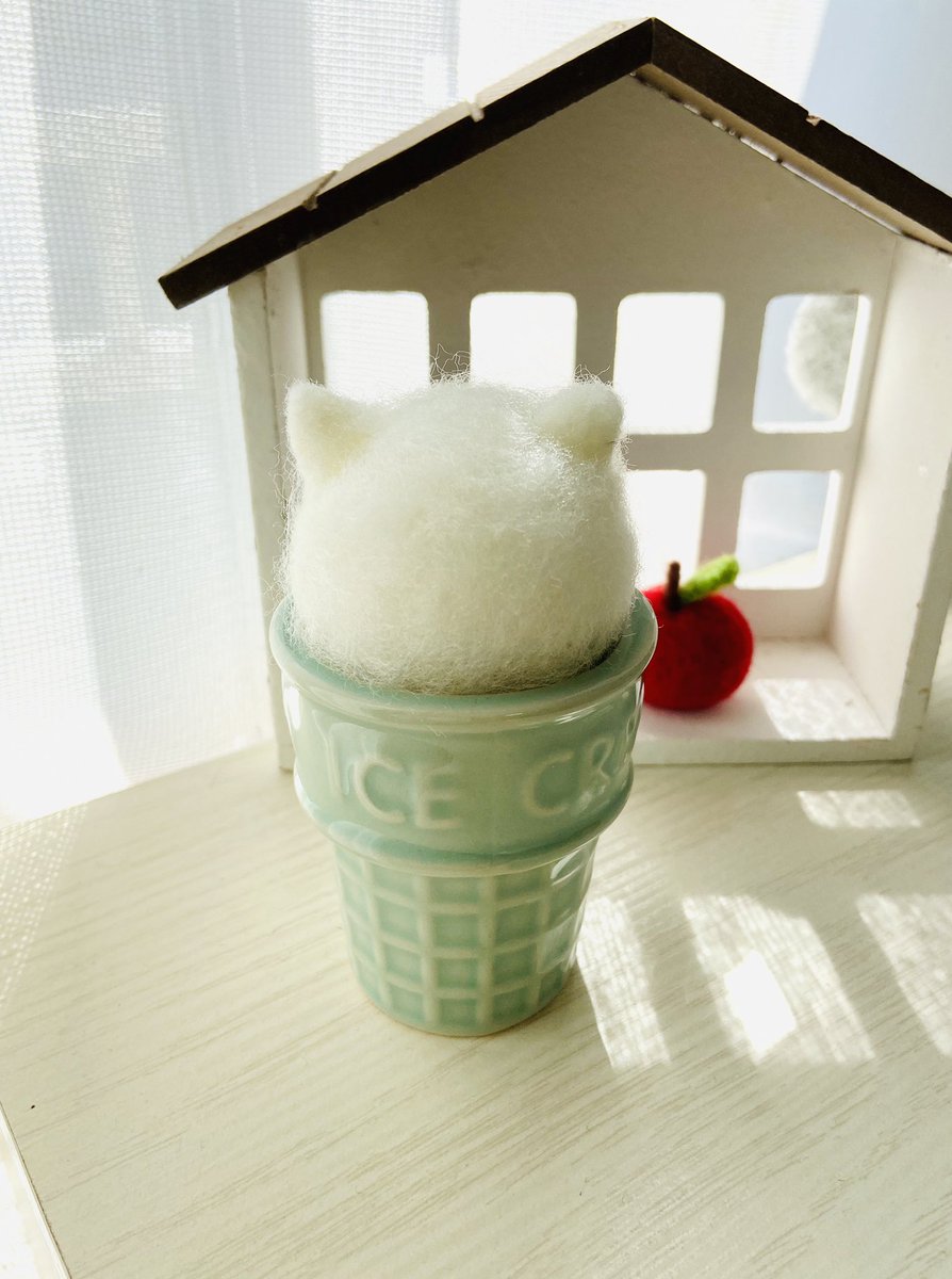 羊毛フェルト アイスクリームみたいなポメラニアン🐶🍨 #羊毛フェルト #ポメラニアン #白いポメラニアン #犬 #ぬいぐるみ #アイスクリーム