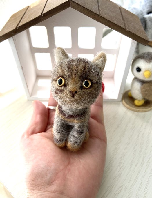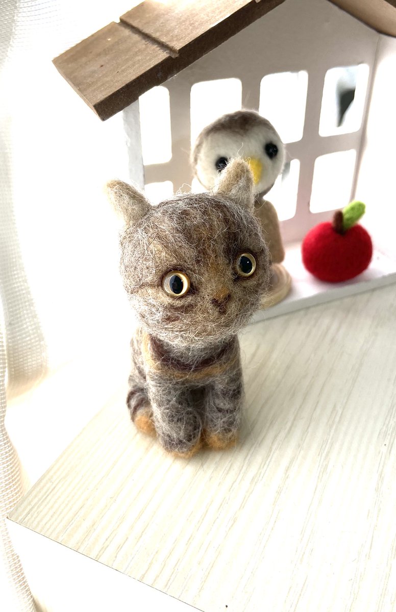 羊毛フェルトの猫ちゃん🐈 お客様のご依頼で、猫ちゃん作りました^ ^ キジ猫ちゃん難しいですね〜💦💦💦 #羊毛フェルト #猫 #キジ猫 #動物 #ぬいぐるみ
